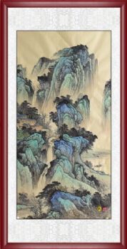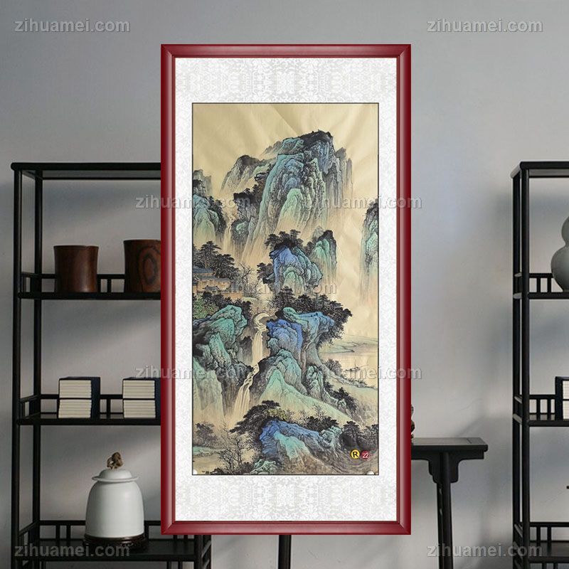 • 玄关聚宝盆山水国画精品四尺彩墨风景国画实木外框