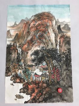 • 小尺寸山水人家鸿运当头四尺三开山水国画