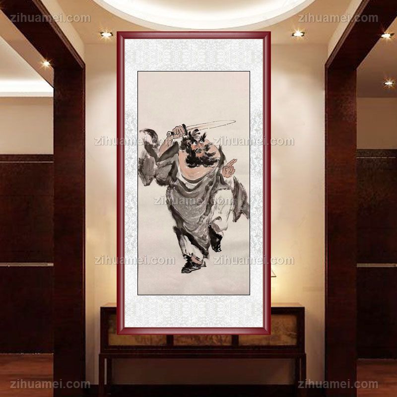 • 钟馗舞剑人物国画纯手绘水墨国画客厅玄关中式人物画