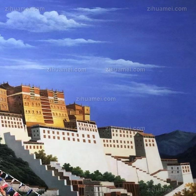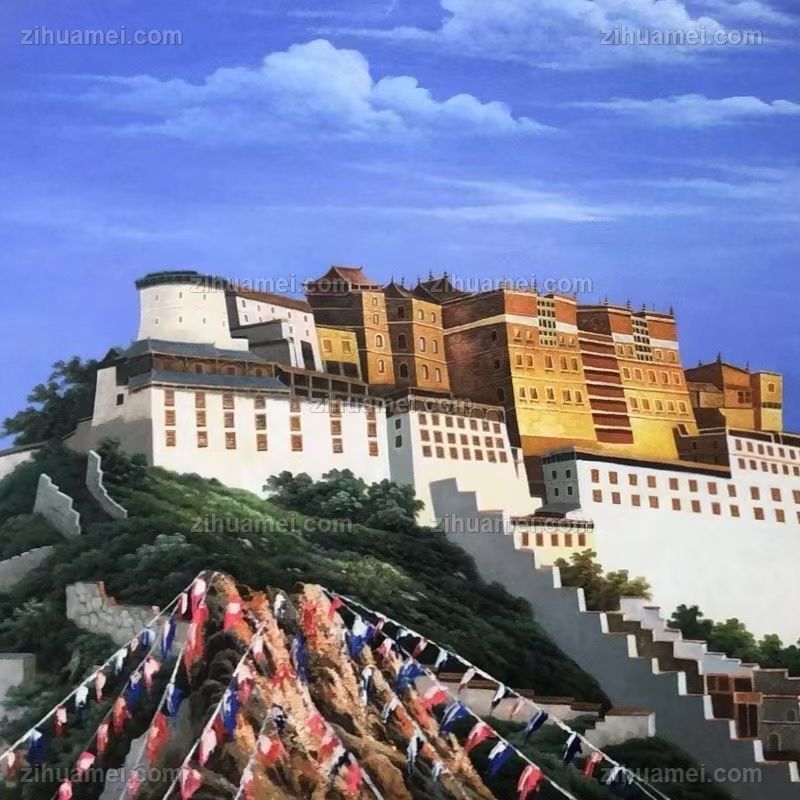 布达拉宫写实风景油画纯手绘油画客厅大厅挂画 手绘