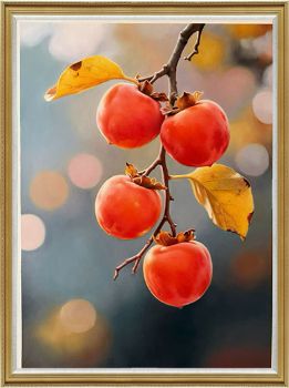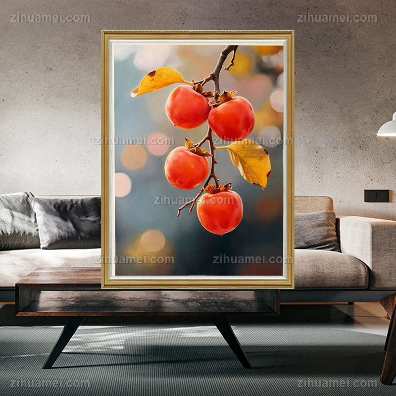 • 精品柿子图写实静物油画纯手绘油画餐厅书房挂画实木外框