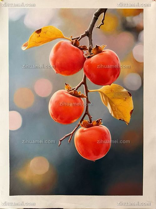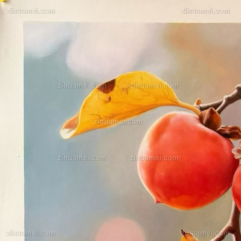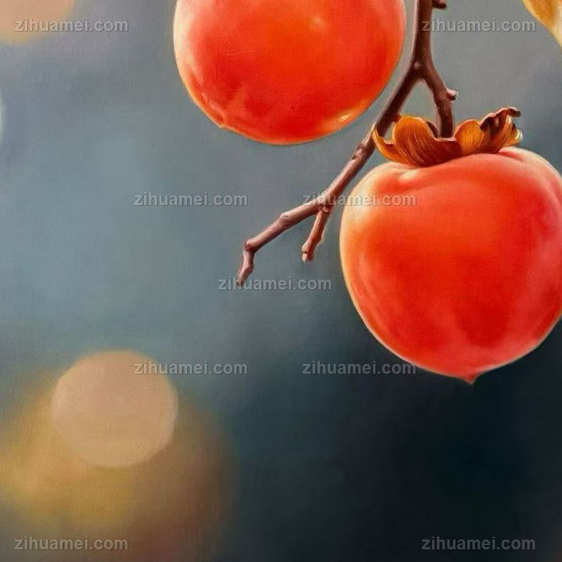 写实静物手绘油画好柿一箩框柿子图事事如意 手绘
