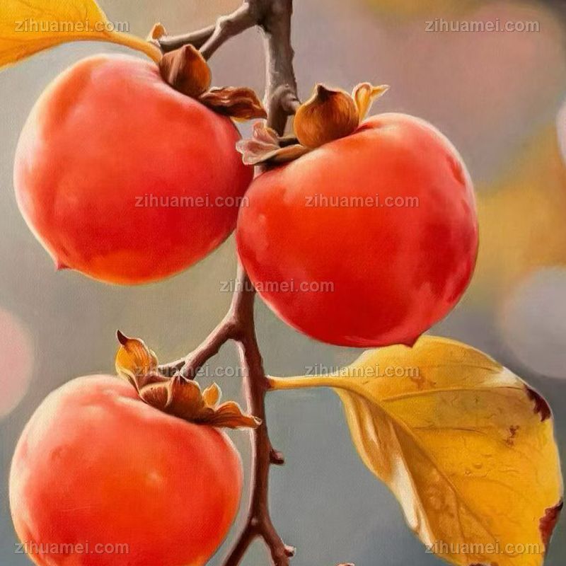好事一箩框新中式静物写实油画事事如意柿子图 手绘