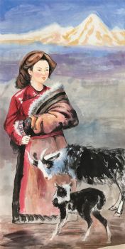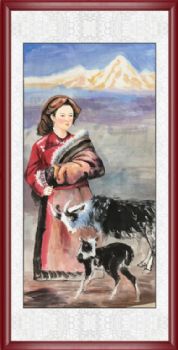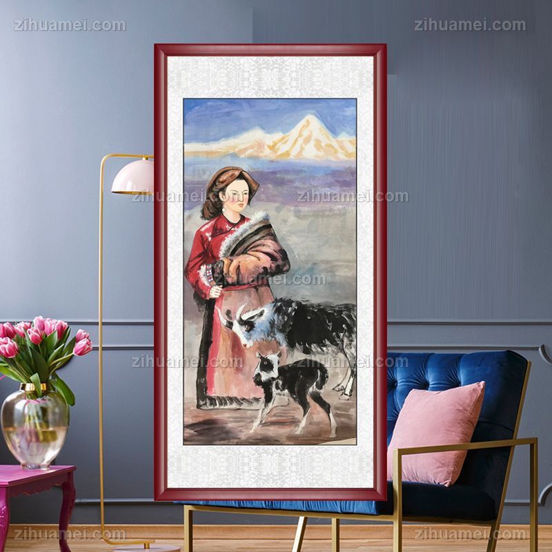• 牧羊女人物国画纯手绘美女仕女国画客厅酒店国画实木外框