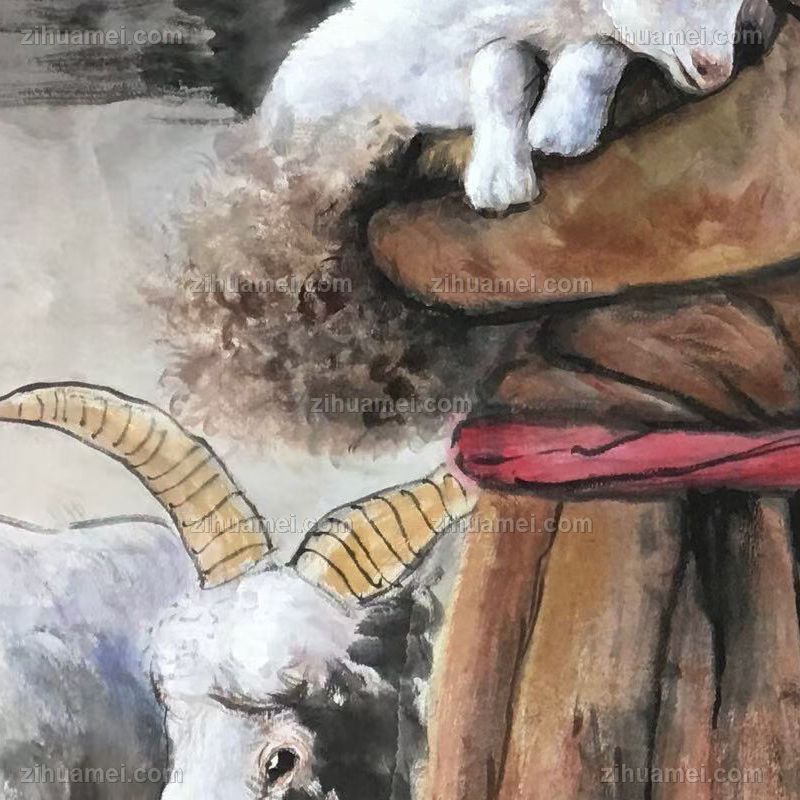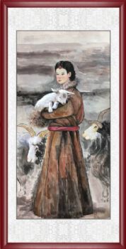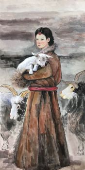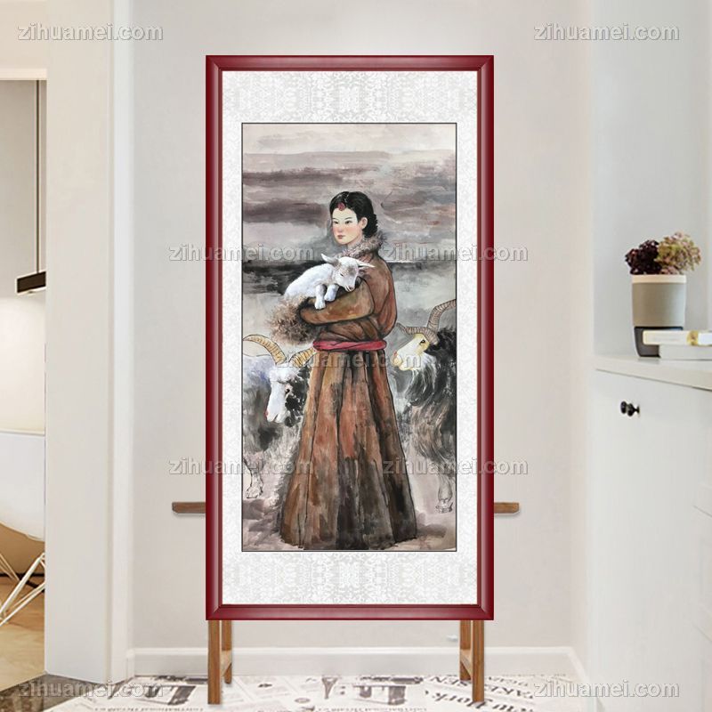 • 水墨国画牧羊女人物国画纯手绘美女仕女国画客厅酒店国画实木外框