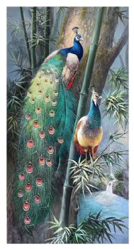 纯手绘孔雀图竹林孔雀节节高升幸福吉祥玄关挂画 手绘