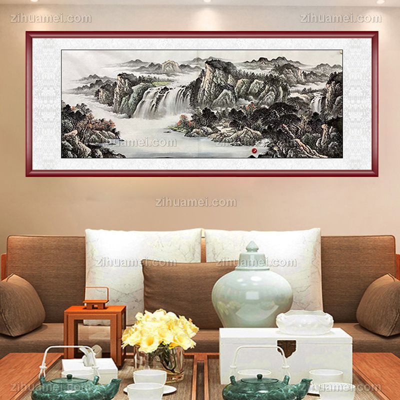 山水风景国画客厅大厅纯手绘国画
