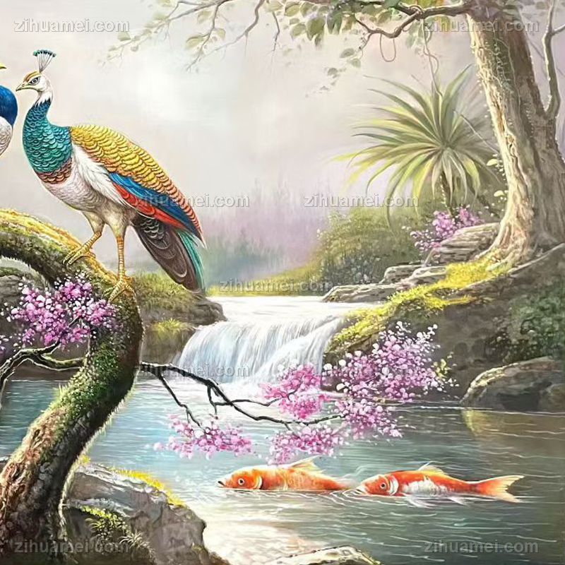 • 大厅孔雀手绘油画