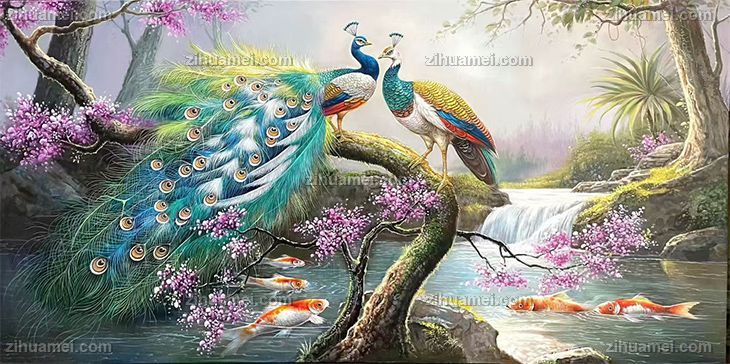 大厅孔雀手绘油画