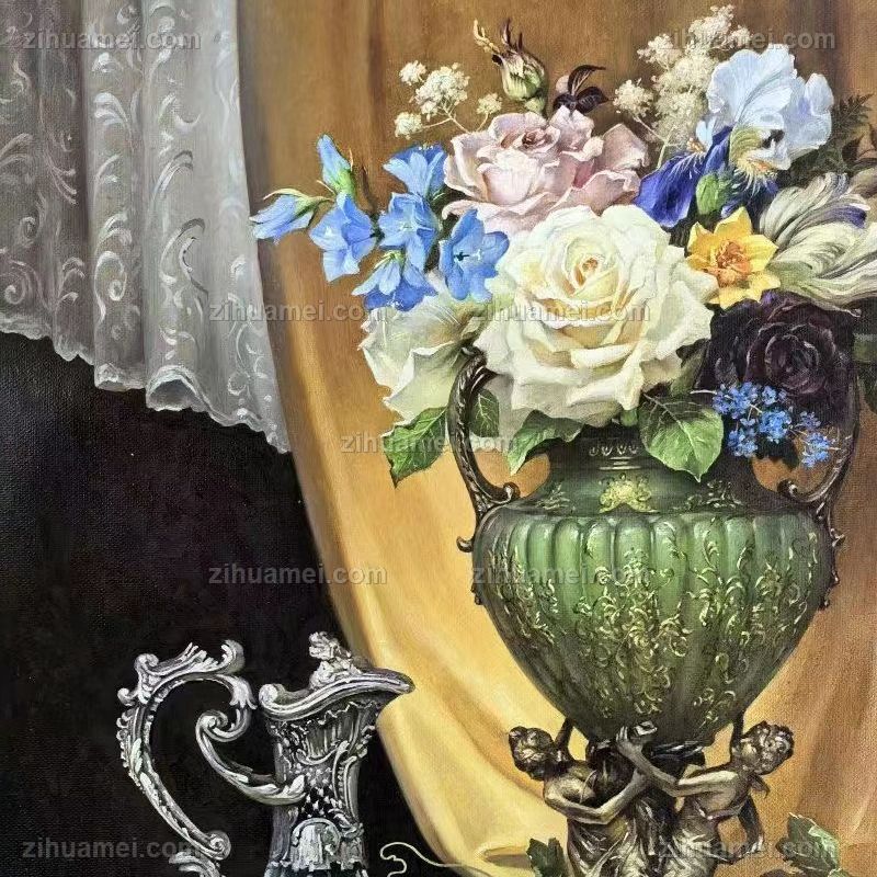 • 欧式花瓶花卉古典油画
