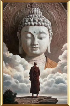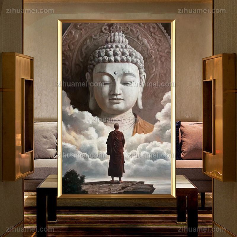• 手绘神佛写实油画中式玄关中堂油画实木外框