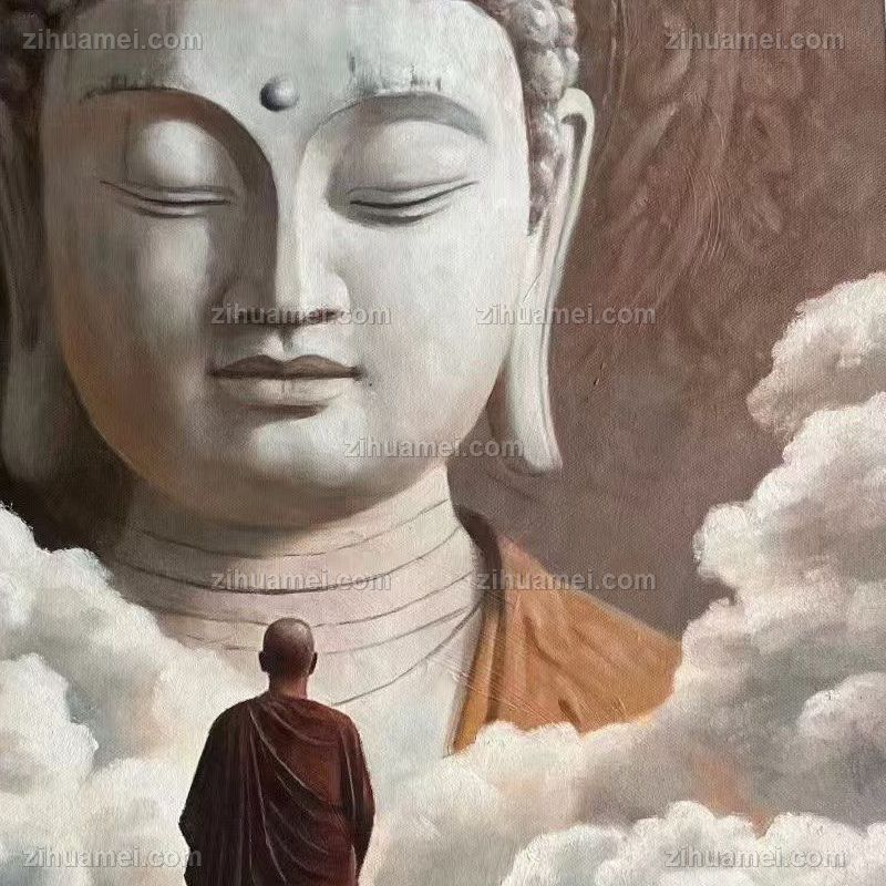 手绘拜佛神佛写实油画